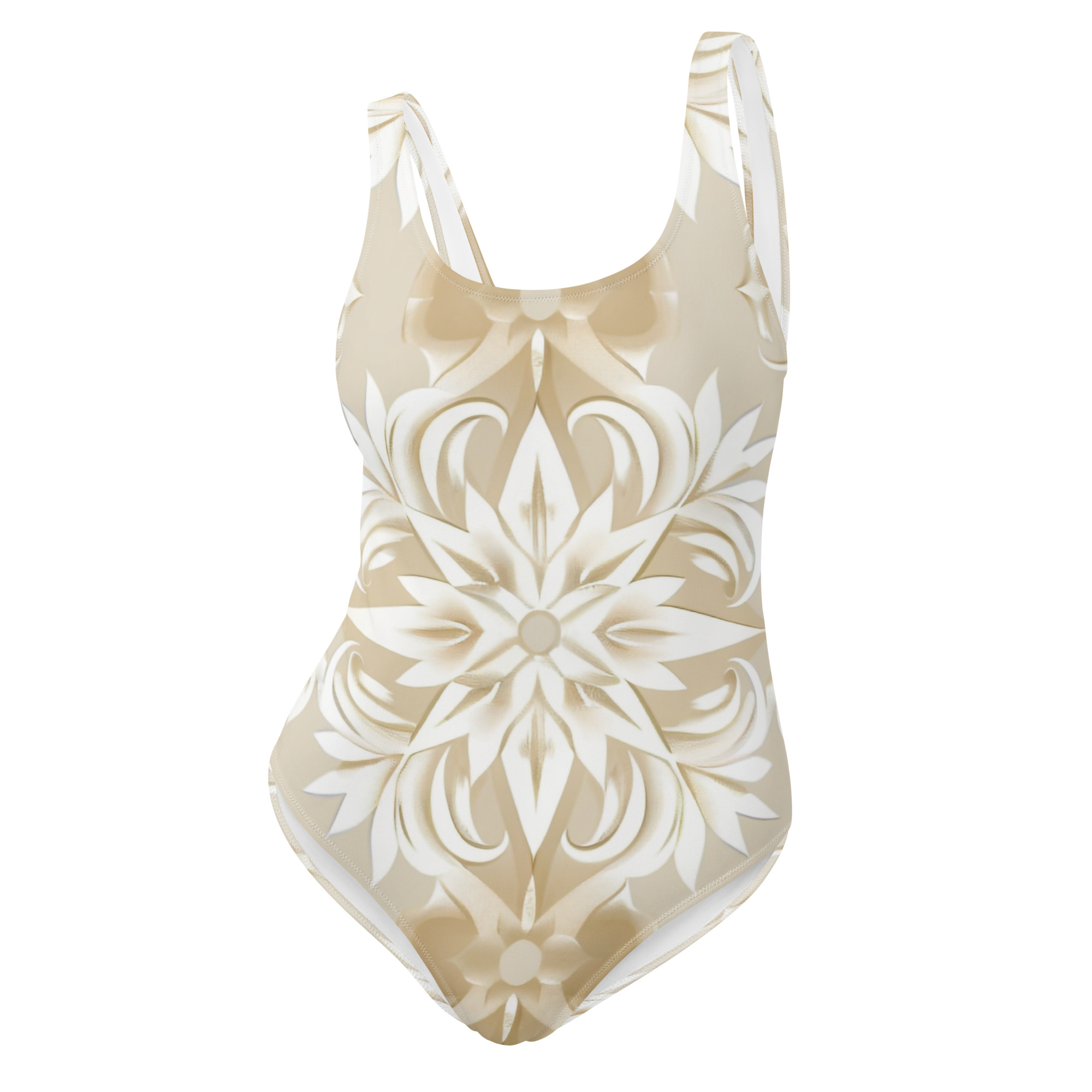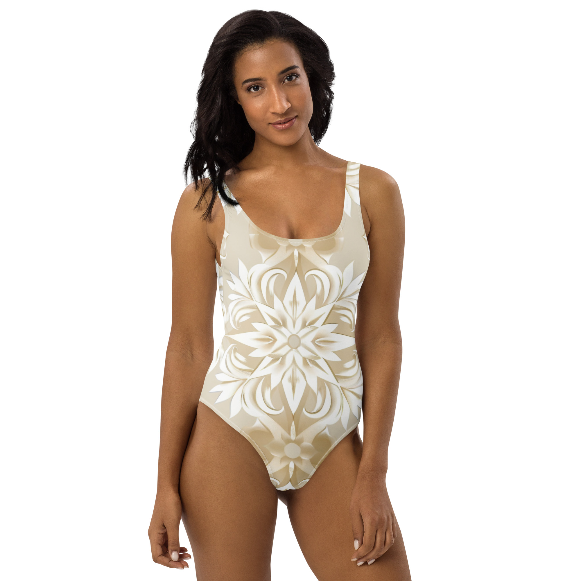 Este bañador premium de corte clásico y espalda baja combina un diseño floral en tonos beige suaves con una confección de alta calidad. El estampado integral se adapta perfectamente al cuerpo y realza la figura con elegancia y comodidad. Ideal para playa, piscina o vacaciones, este diseño destaca por su originalidad y su estética atemporal.