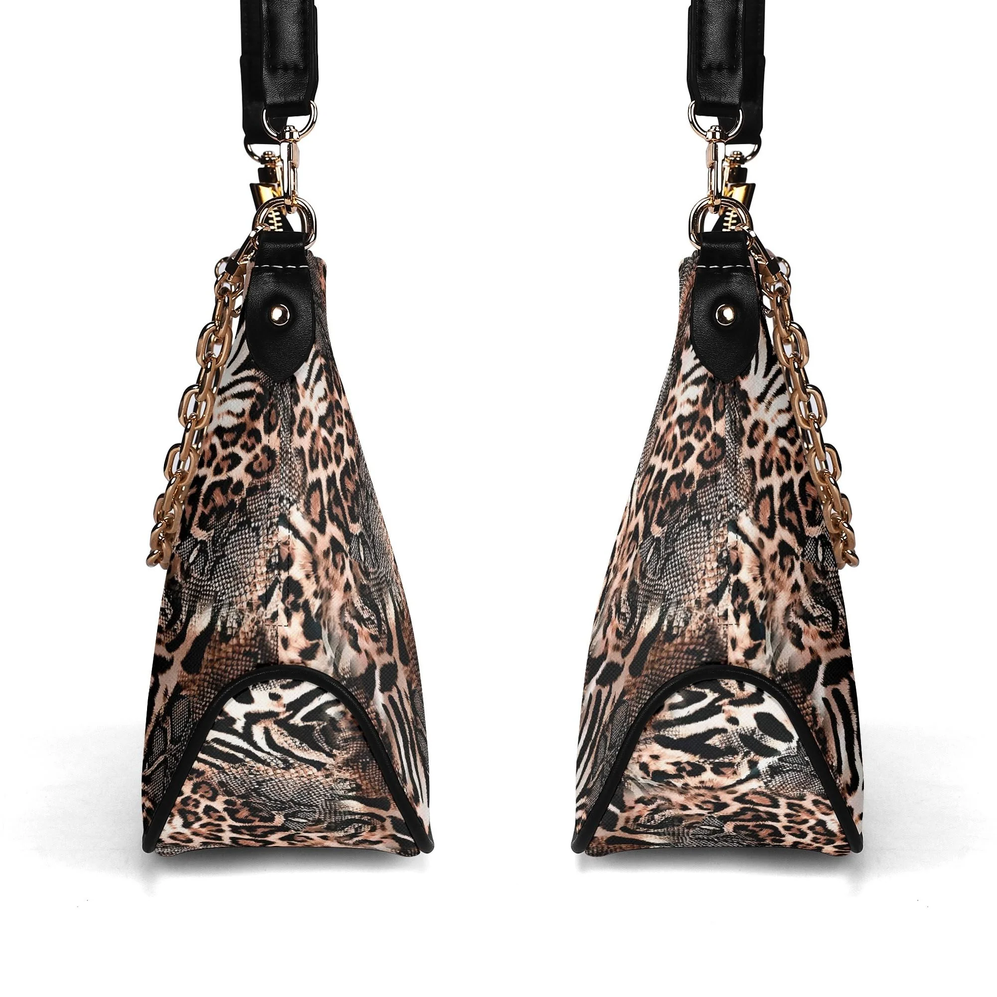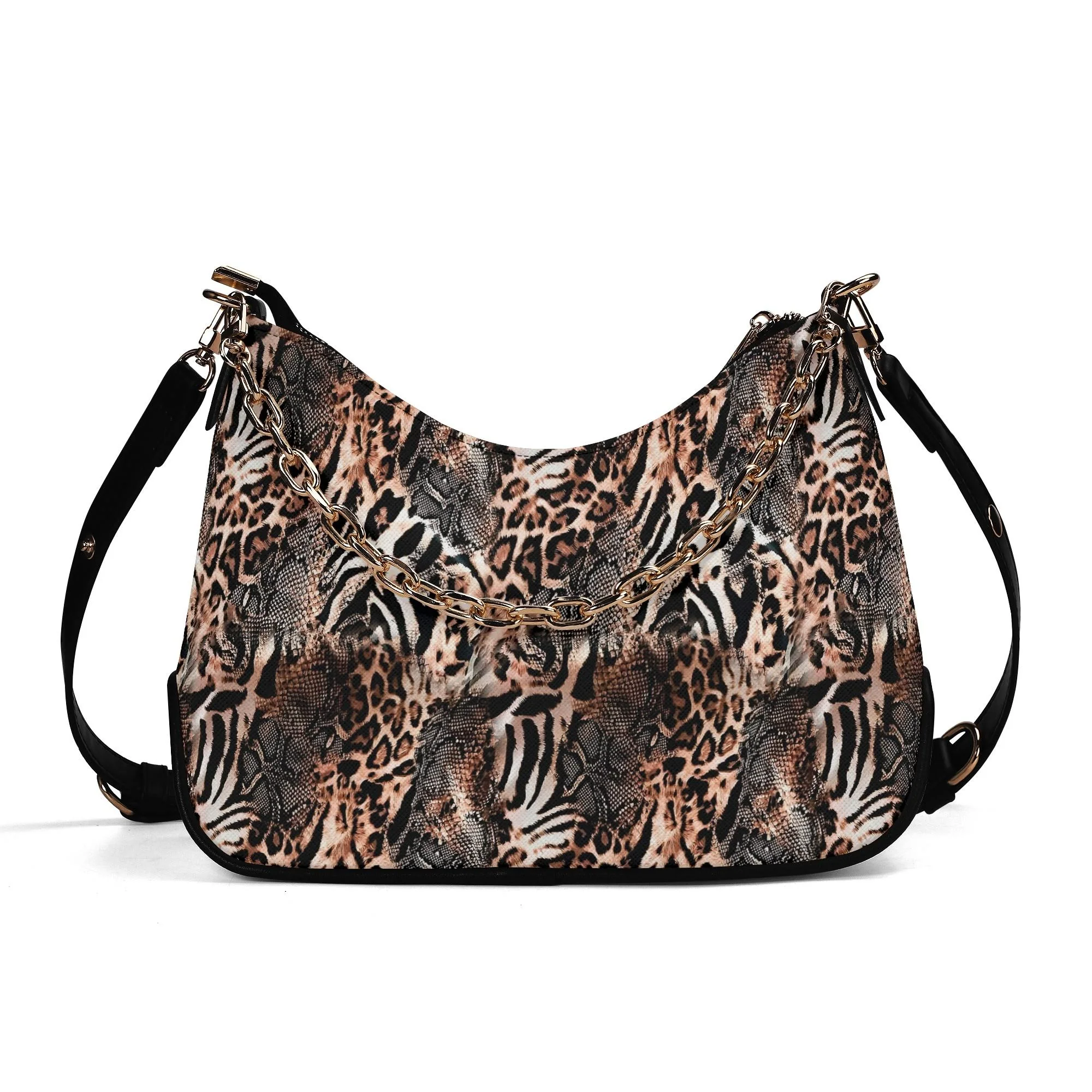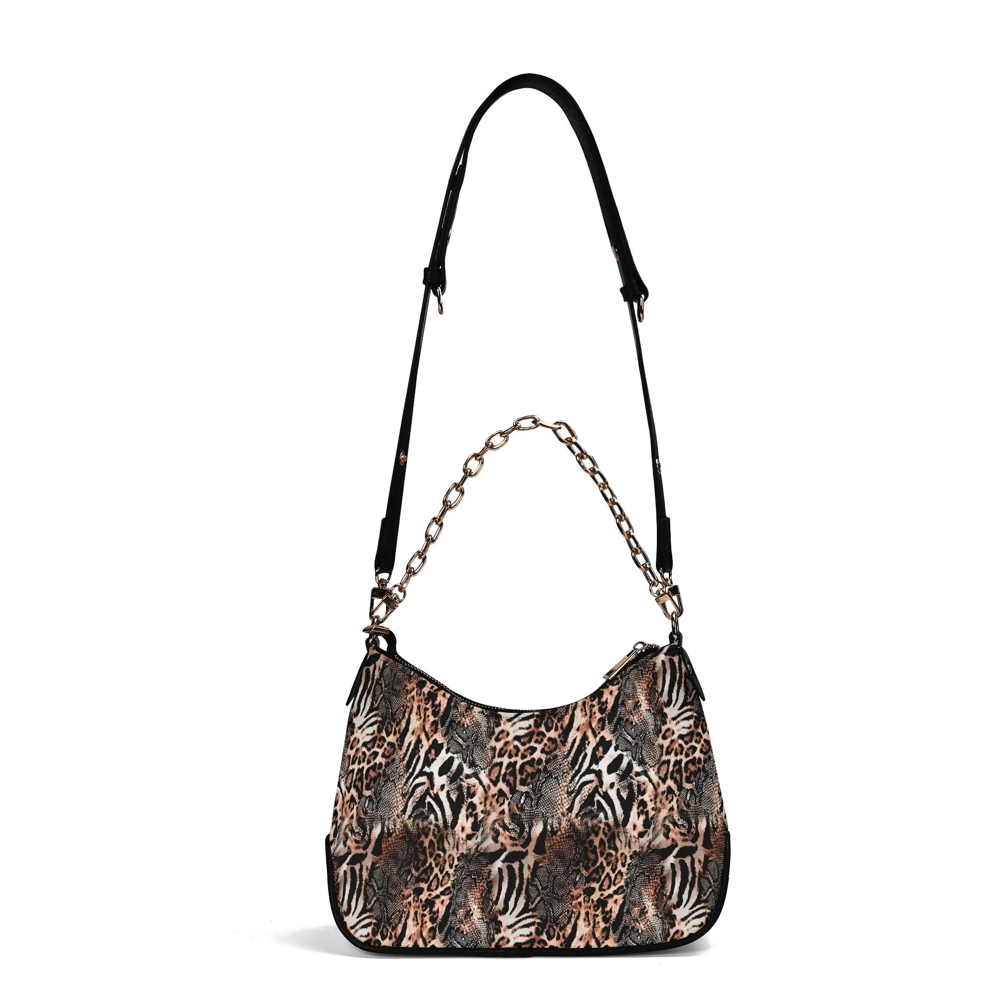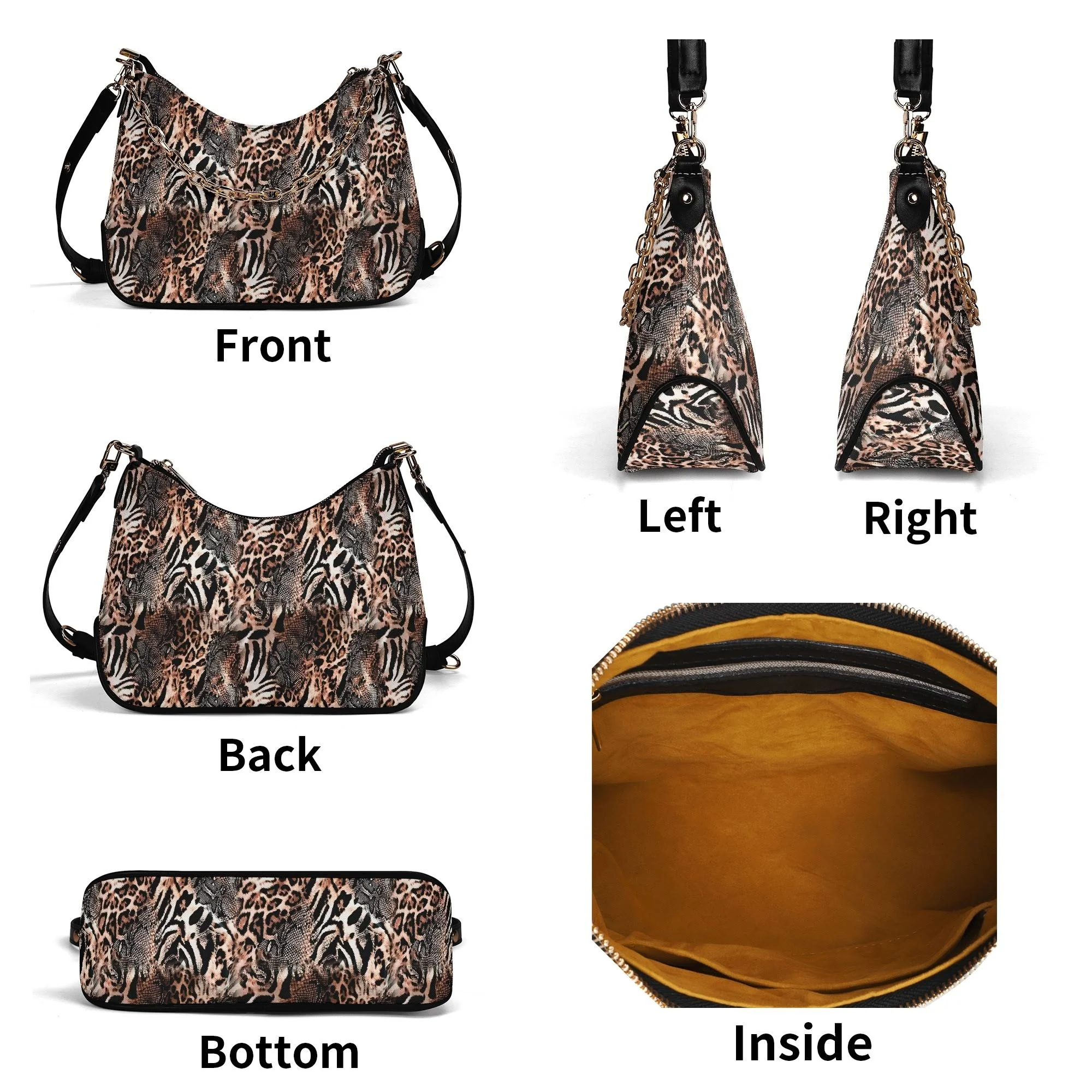 El Bolso Hobo Salvaje Chic presenta un diseño único que fusiona estampados de leopardo, cebra y serpiente. Esta combinación crea un patrón llamativo que te hará destacar en cualquier lugar. Los tonos marrones, beige y negros aseguran que este bolso se convierta en tu accesorio favorito para cualquier ocasión.