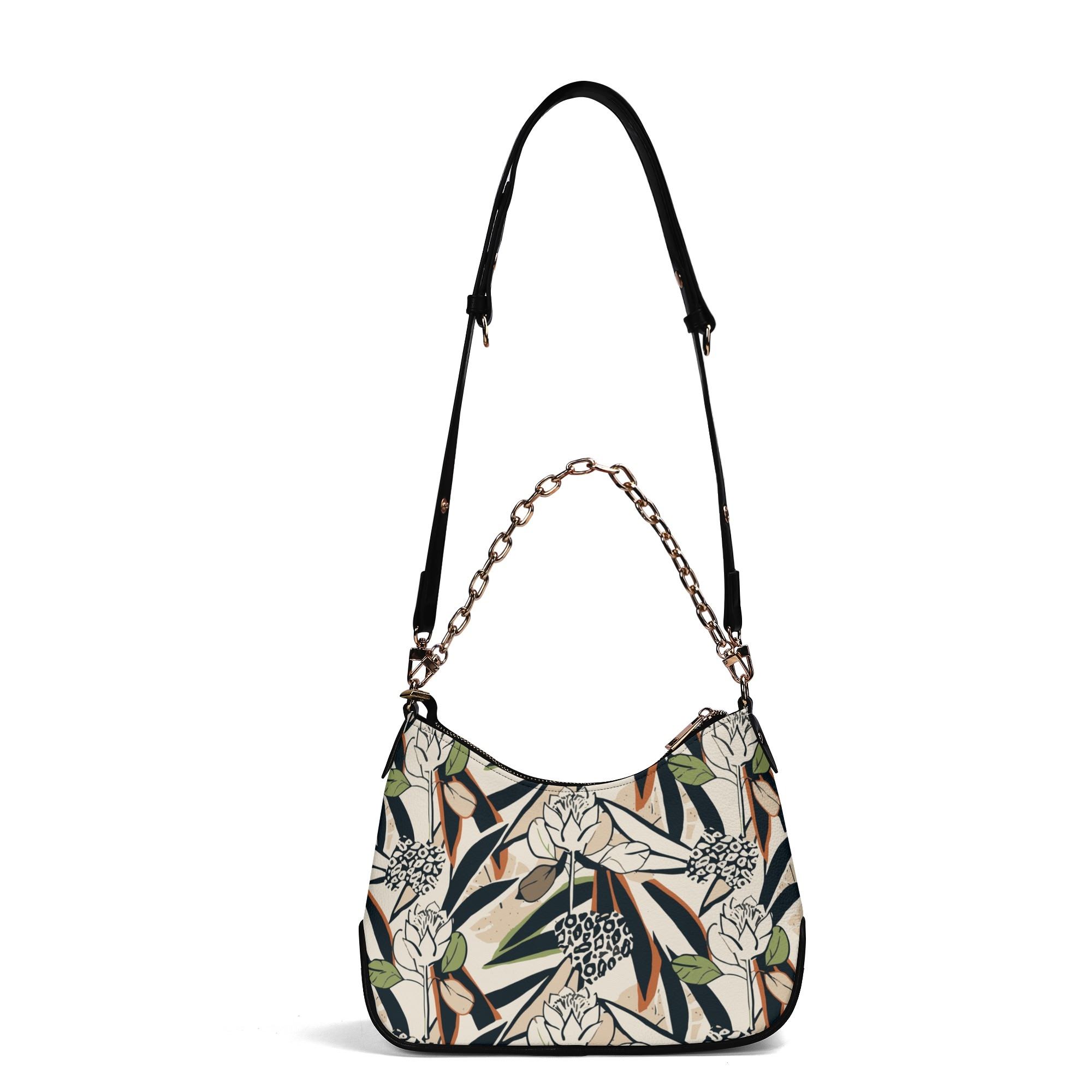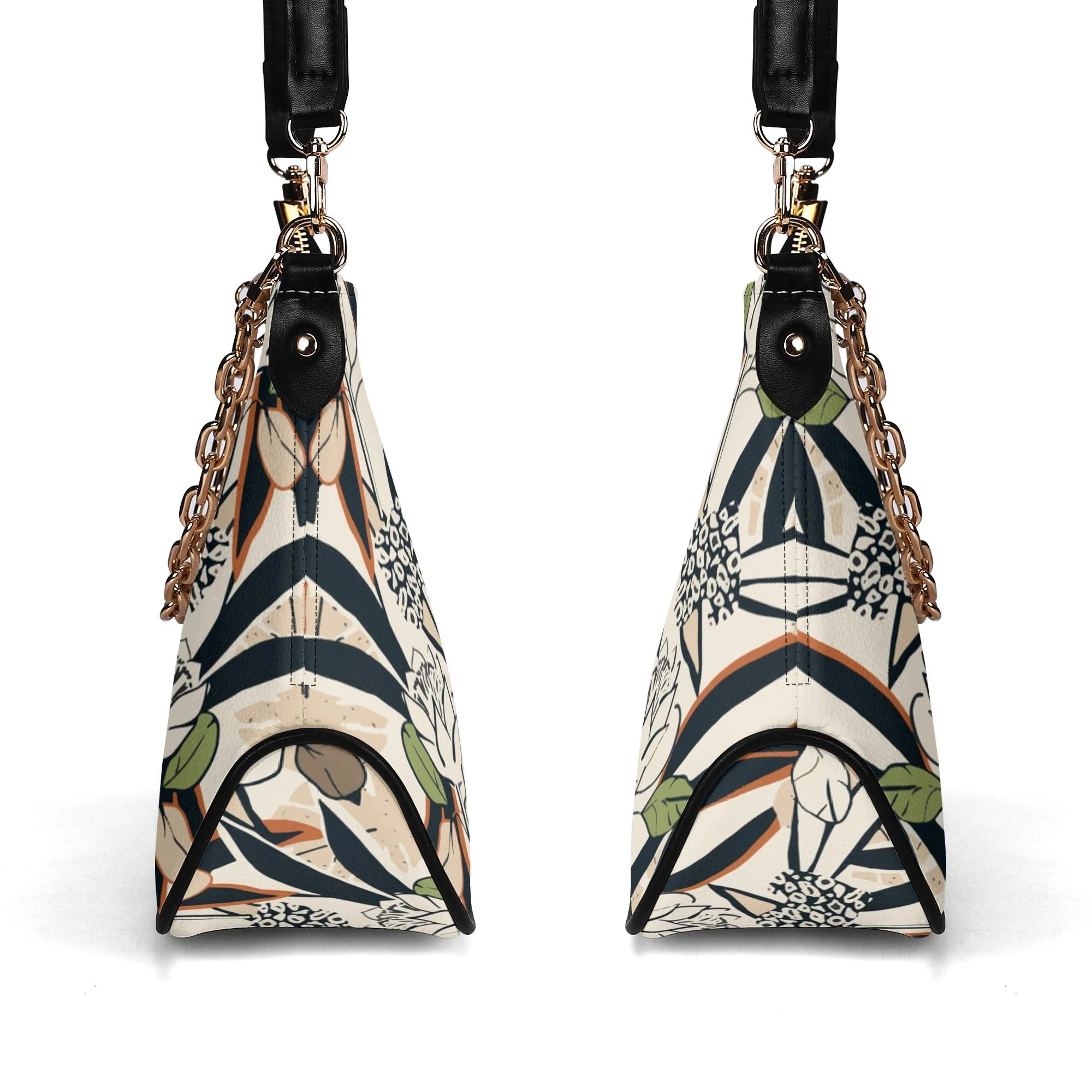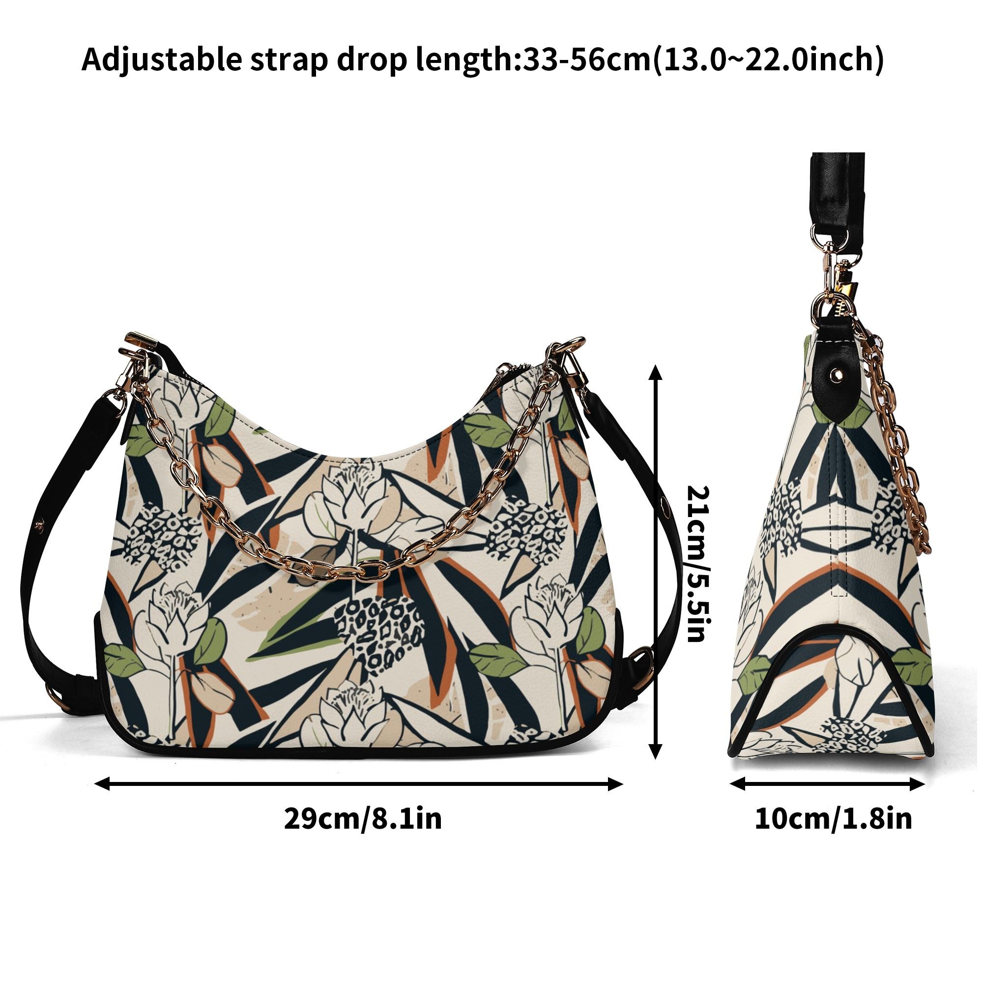 El Bolso Hombro Floral Chic con Cadena Dorada es una pieza imprescindible que combina estilo y funcionalidad. ¡Añádelo a tu carrito ahora y destaca en cualquier lugar!