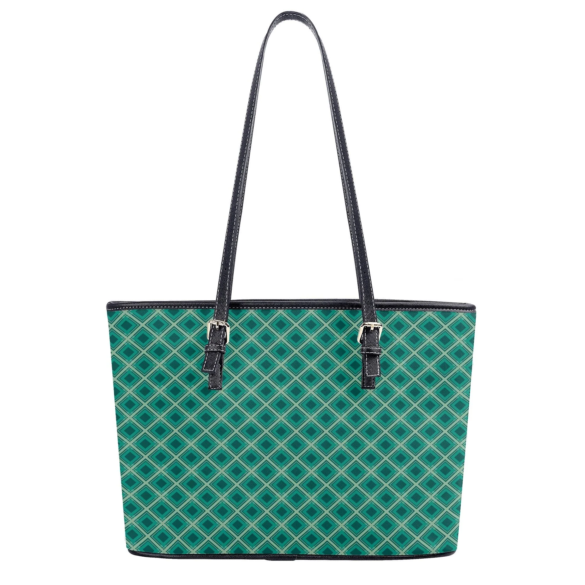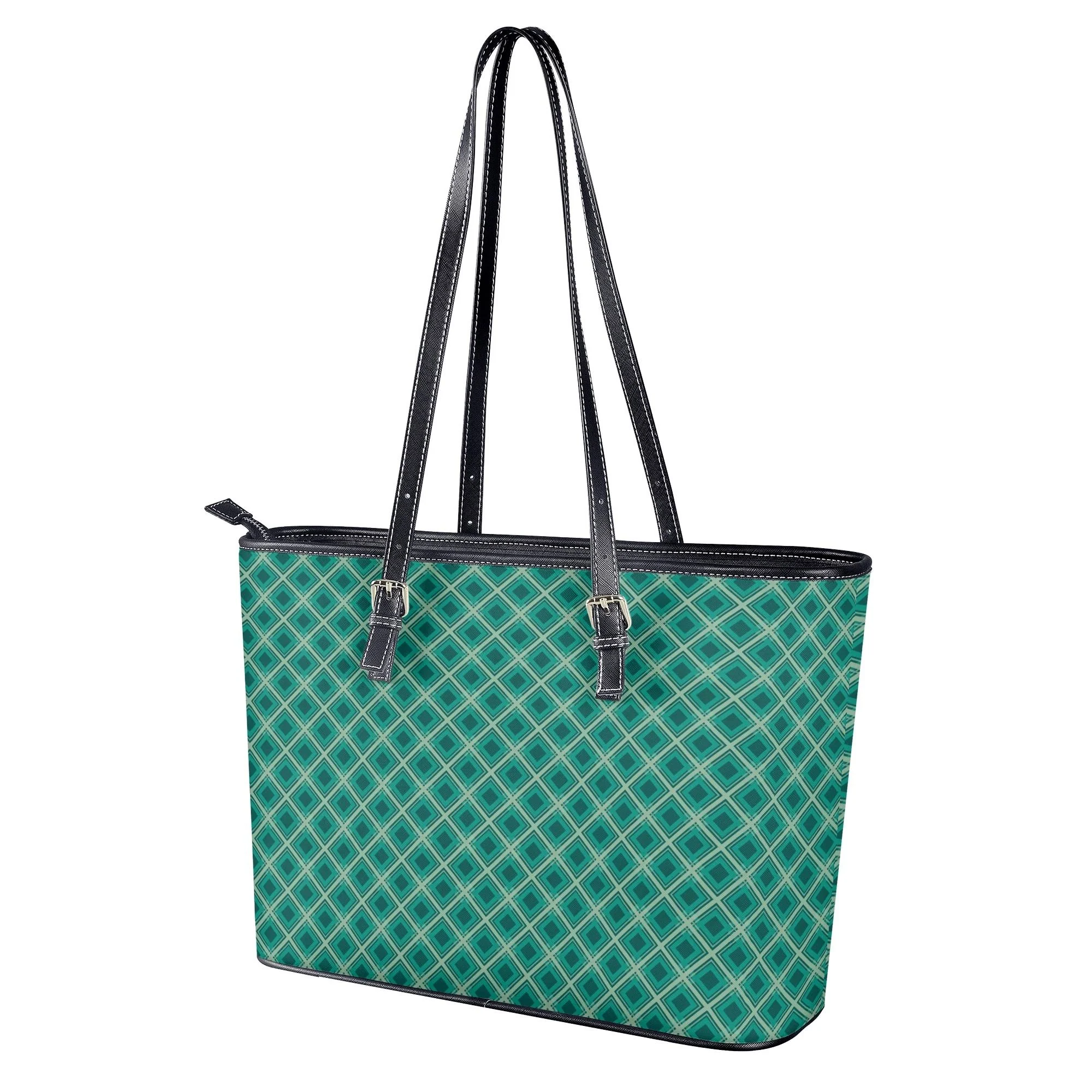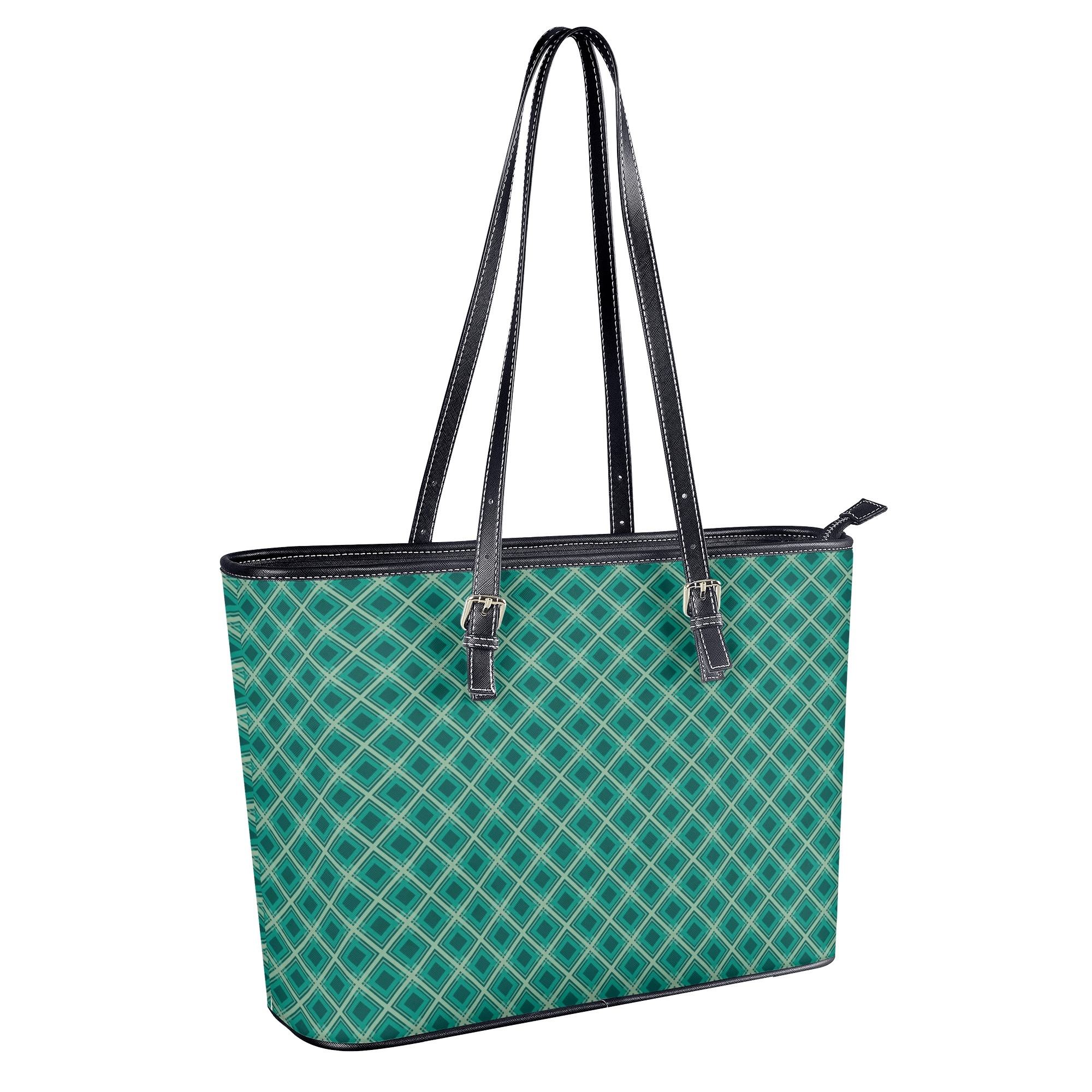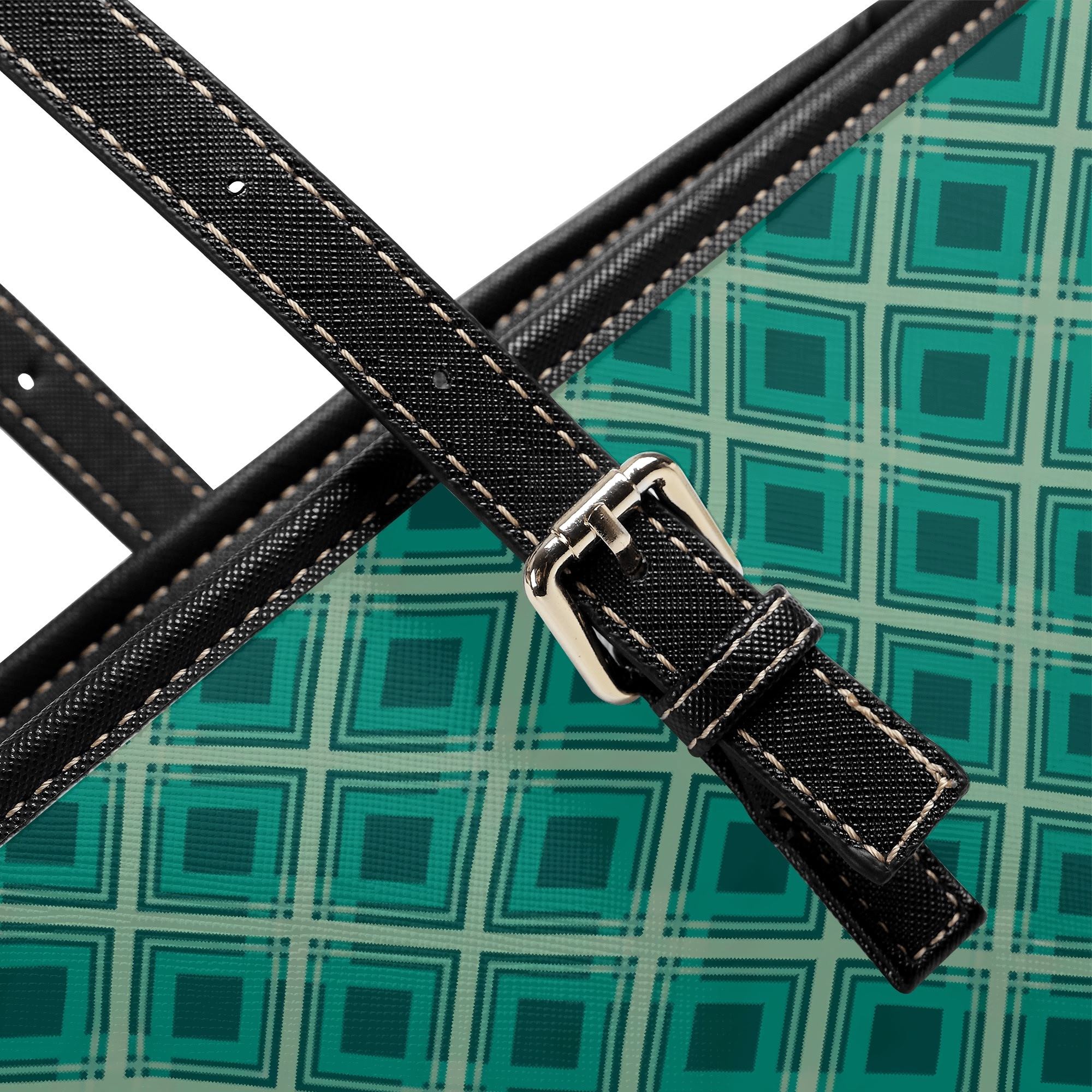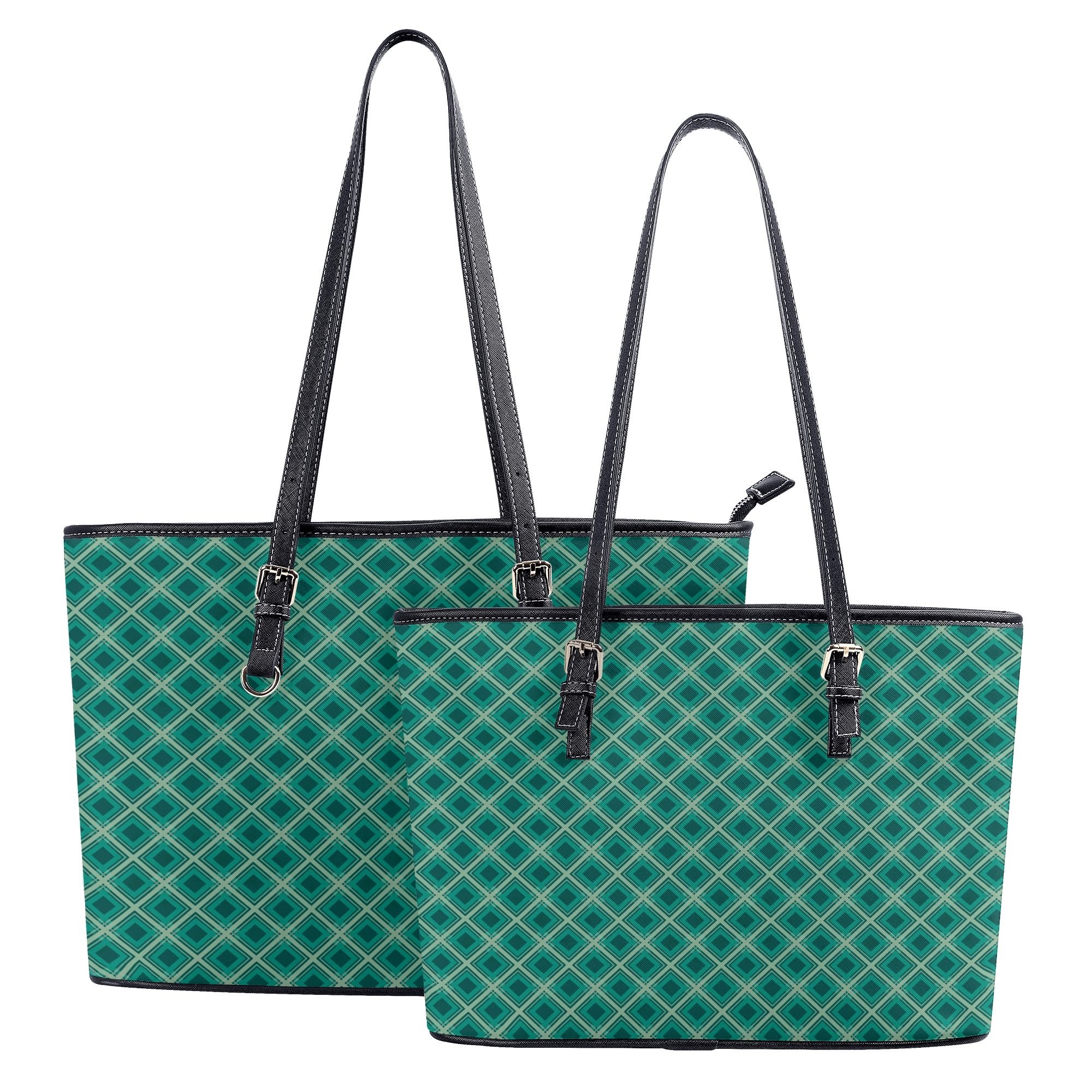 Bolso Tote Elegante de Piel Sintética PU – Diseño Geométrico en Verdes Sofisticados