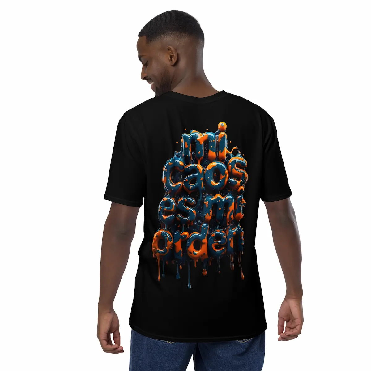 La Camiseta Hombre – Mi Caos Es Mi Orden – IP es una pieza clave del streetwear contemporáneo: diseño tipográfico en 3D con textura líquida, contraste vibrante azul-naranja y un mensaje poderoso sobre la dualidad del control y la creatividad.
