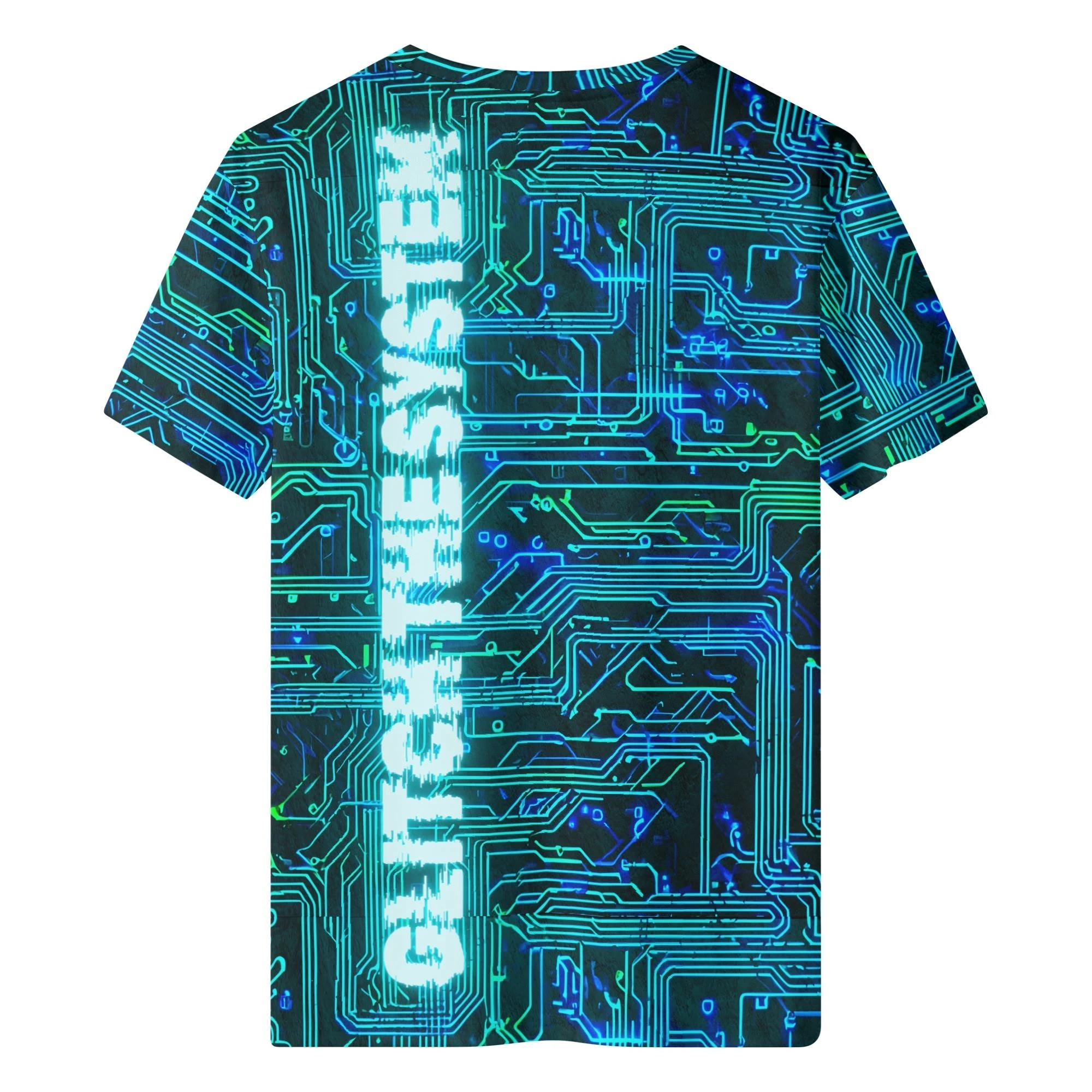 Camiseta Techwear Glitch. La Camiseta Techwear Glitch es una declaración de rebelión digital y estilo urbano para hombres que desafían lo convencional. Confeccionada en poliéster de alta calidad, esta camiseta no solo ofrece durabilidad y comodidad, sino también un diseño all-over print que fusiona tecnología y arte callejero. Ideal para amantes de la estética cyberpunk, gamers o entusiastas de la moda disruptiva, combina funcionalidad con un mensaje audaz.
