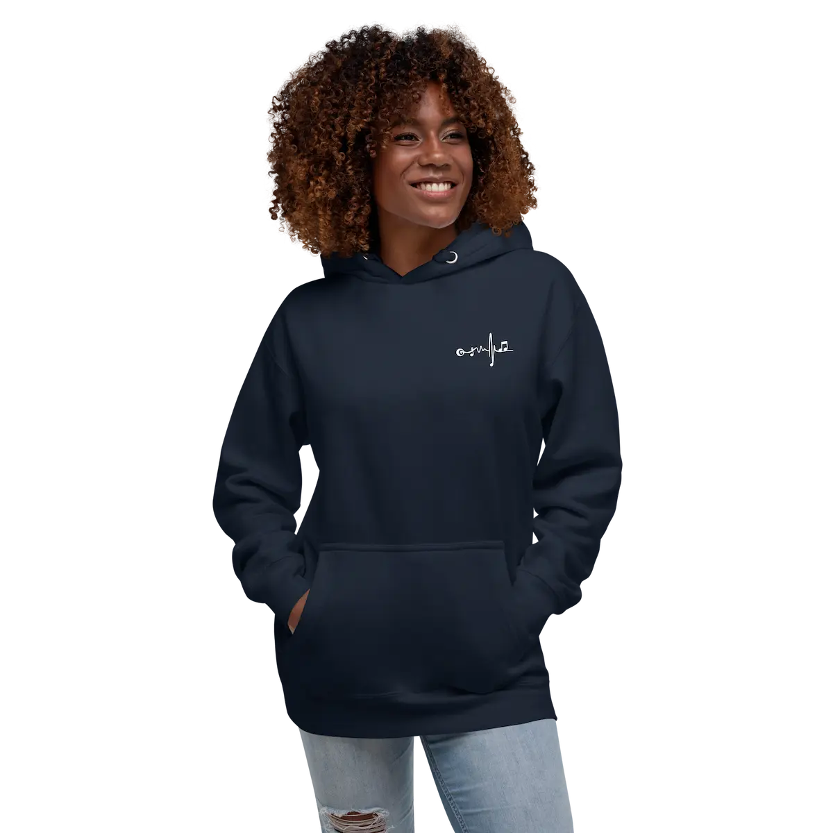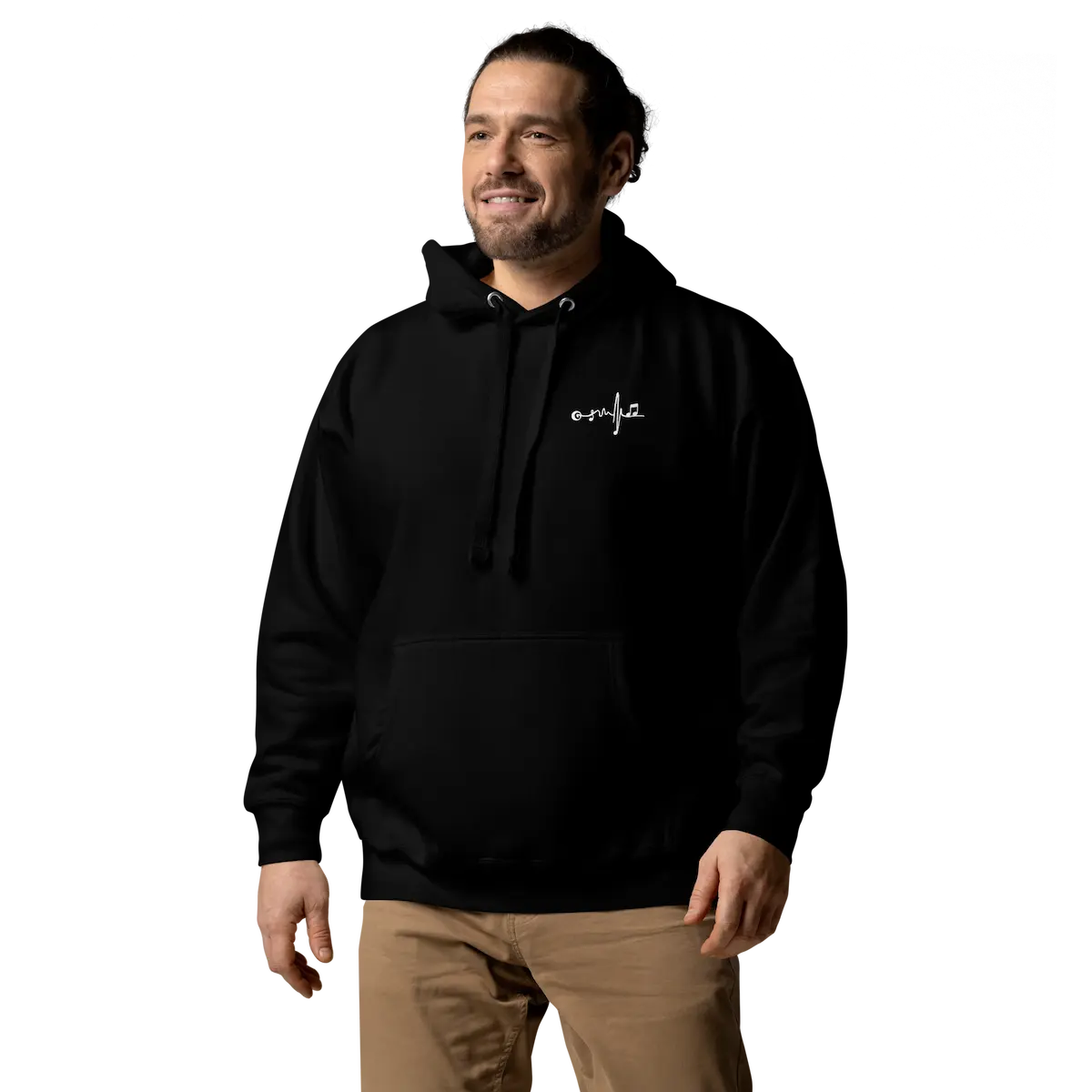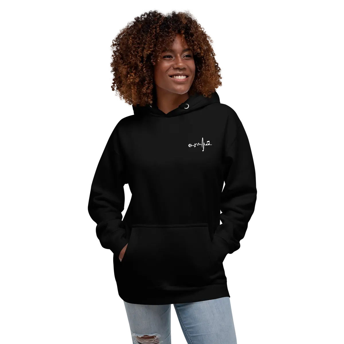 La Sudadera con capucha unisex Beat Vinyl – IP combina confort premium y estética musical limpia. En el pecho izquierdo lleva un micro-logo de latido musical bordado/impreso en contraste blanco; en la espalda, un vinilo XL en blanco con ondas y patrón de puntos que firma el look. Tejido suave con interior de vellón, bolsillo canguro, capucha de 3 paneles y cordón plano a juego. Cae bien en todo tipo de cuerpos (unisex). Ideal para capas y para looks de escenario o calle.