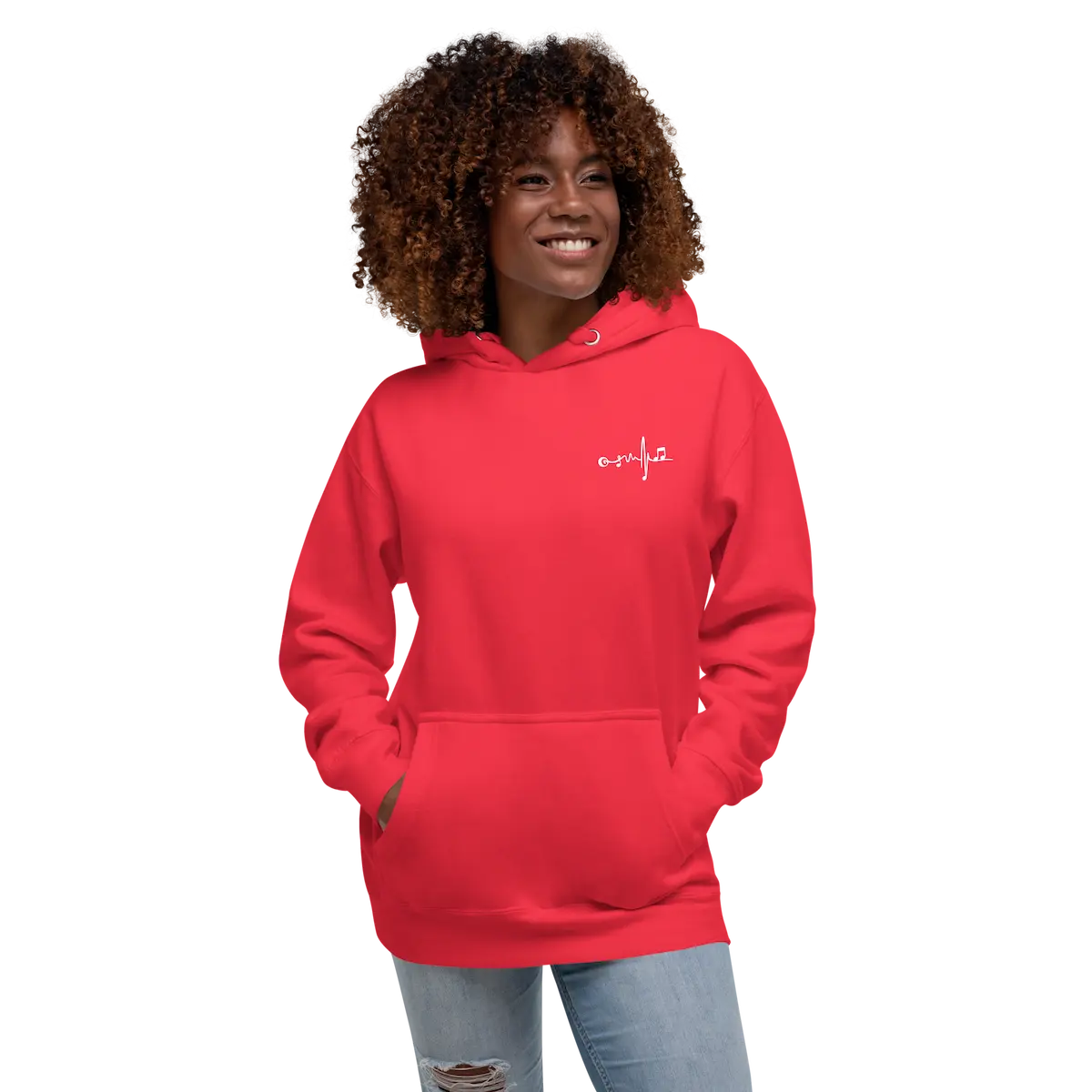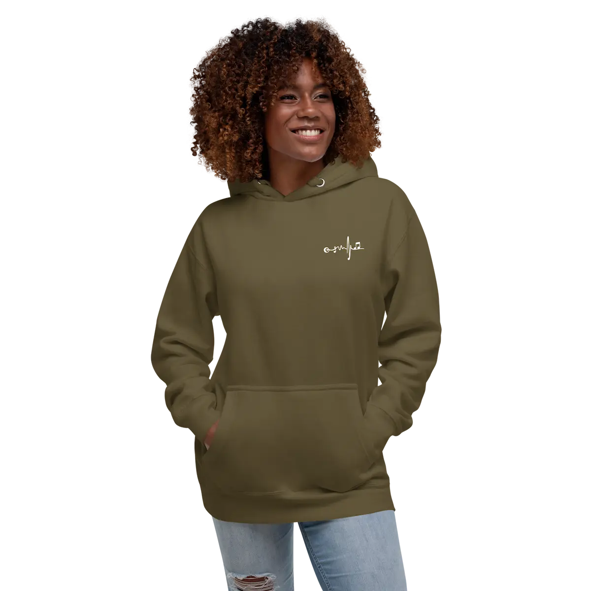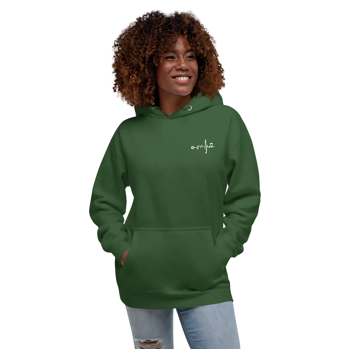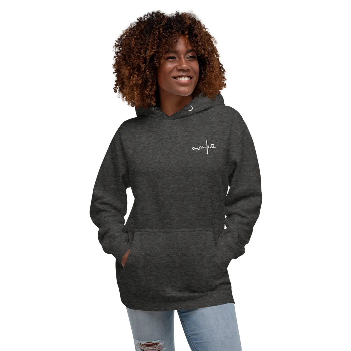 La Sudadera con capucha unisex Beat Vinyl – IP combina confort premium y estética musical limpia. En el pecho izquierdo lleva un micro-logo de latido musical bordado/impreso en contraste blanco; en la espalda, un vinilo XL en blanco con ondas y patrón de puntos que firma el look. Tejido suave con interior de vellón, bolsillo canguro, capucha de 3 paneles y cordón plano a juego. Cae bien en todo tipo de cuerpos (unisex). Ideal para capas y para looks de escenario o calle.