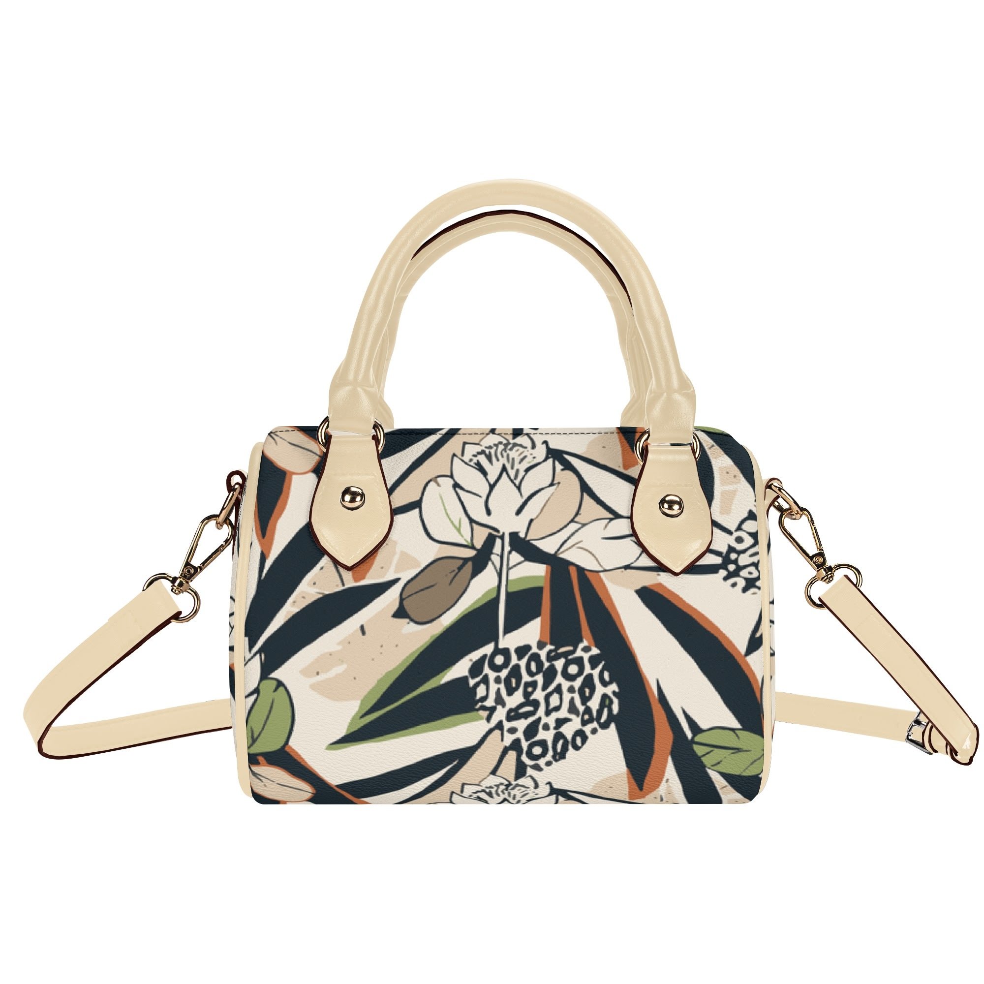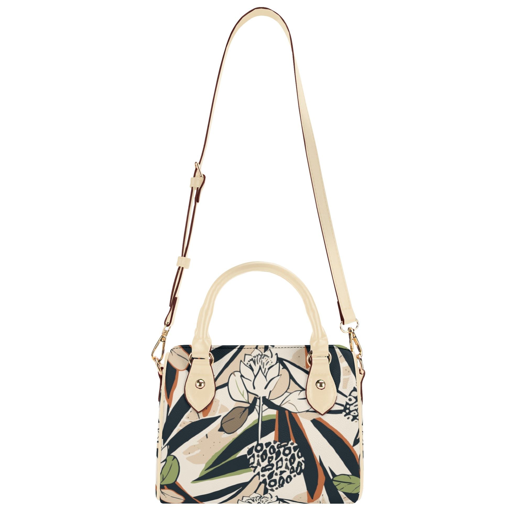 No es solo un bolso, es una expresión de estilo. Con un estampado floral artístico sobre un fondo en tonos crema y detalles en negro y gris, esta pieza se convierte en el centro de atención de cualquier outfit. Los toques de color en verde oliva y ocre aportan calidez y hacen que el diseño destaque sin ser demasiado recargado. Ideal para quienes buscan una estética moderna con un sutil aire vintage.