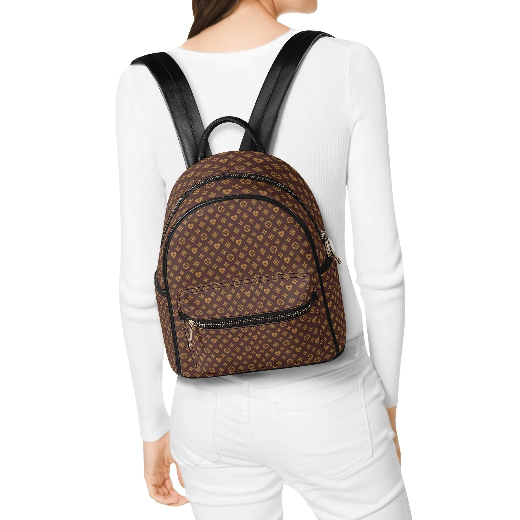 La Mochila Monograma Exclusiva es la combinación perfecta de estilo y funcionalidad. Diseñada para quienes buscan sofisticación en su vida diaria, esta mochila en piel sintética resistente está adornada con un patrón intrincado y armonioso en tonos marrón oscuro y dorado. Su diseño de lujo la convierte en un accesorio ideal tanto para el día a día como para ocasiones especiales.